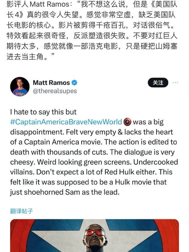 《好意思国队长4:勇敢新天下》口碑欠安现金澳门新银河app平台,激发多方温雅