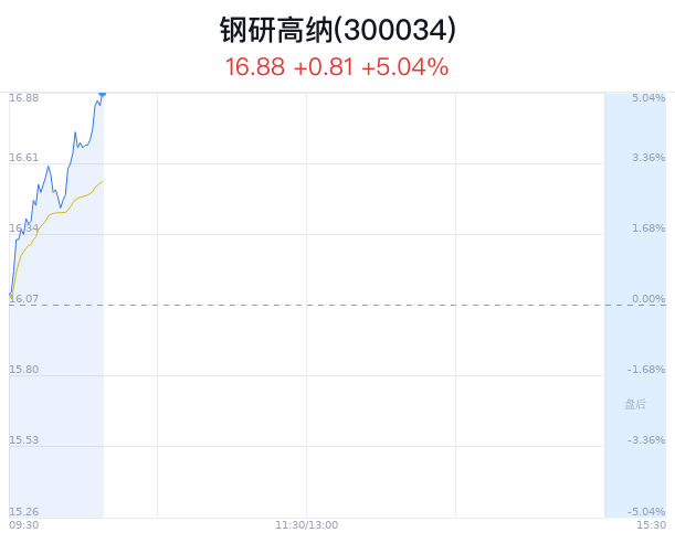 06月17日,钢研高纳(300034)股价大幅飞腾,收尾10点07分,钢研高纳飞腾5.04%,报16.88元/股,成交2.04亿元,换手率1.61%。
