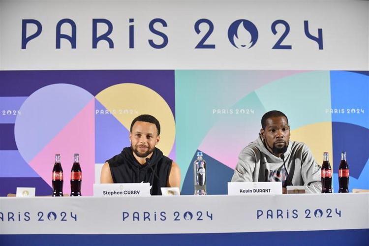 杜兰特(右)和库里出席新闻发布会 (图源:新华社)