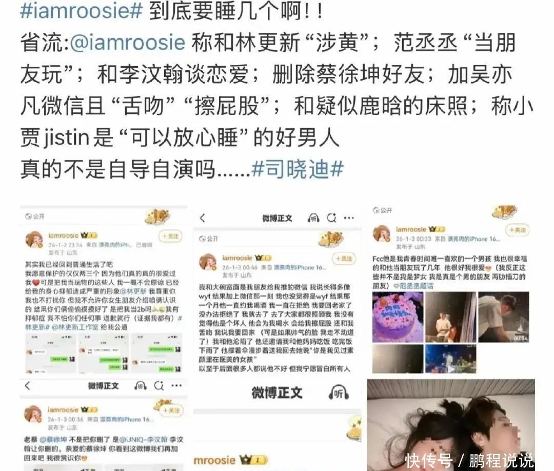 1月3日凌晨,网红用户司晓迪在她的个东谈主账号上爆出了一系列颇具争议的内容,她以iamroosie为账号名,通过我方的爆料称我方和多位著名文娱圈艺东谈主王人有过擅自的关系,何况直言我方这一辈子莫得什么缺憾。该事件已而激勉了无数见原银河官方网站澳门娱乐网,引起了无数磋议。