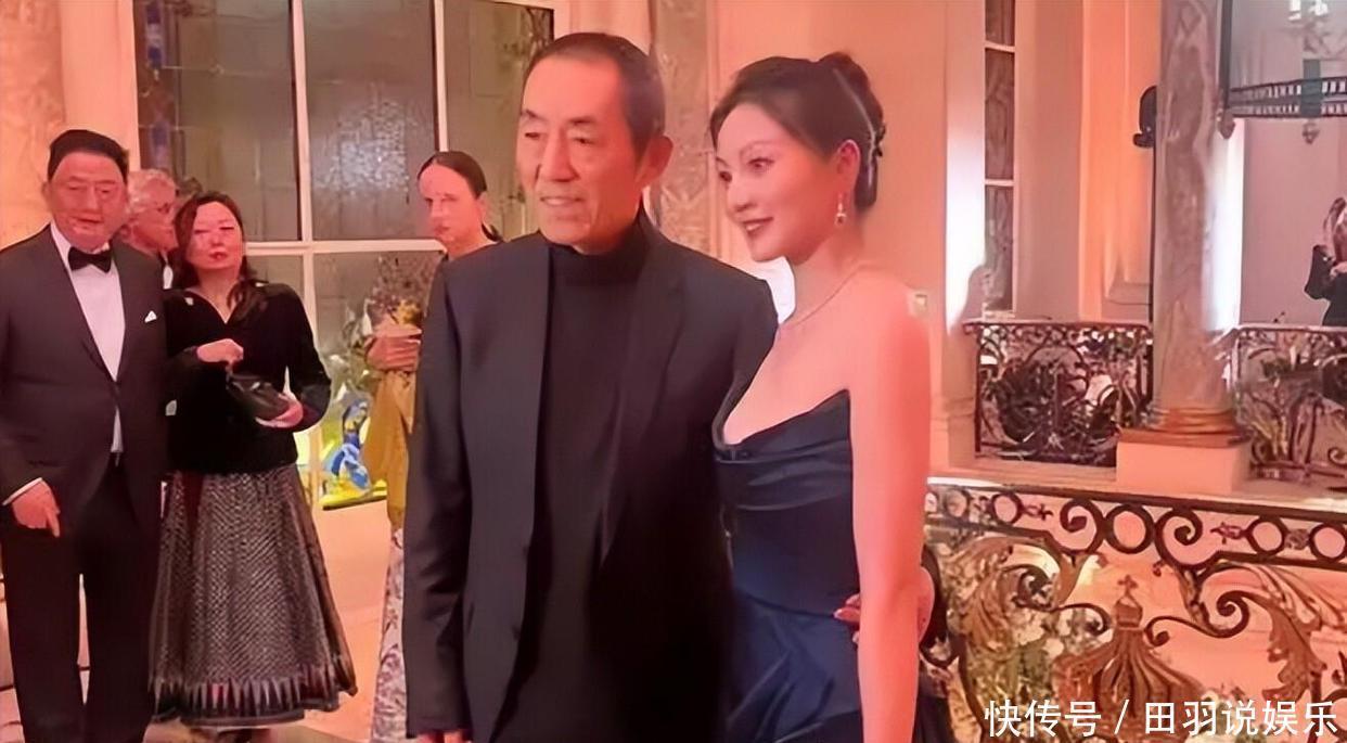 在巴黎名媛舞会的后台,75岁的张艺谋蹲在地上给太太整理裙摆的像片疯传全网。