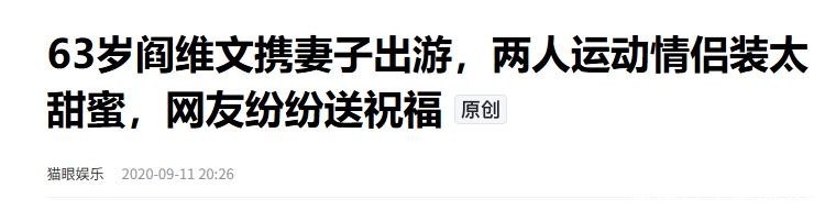 猫眼文娱2020-09-11 20:2663岁阎维文携浑家出游,两东谈主教悔情侣装太甜密,网友纷繁送祈福
