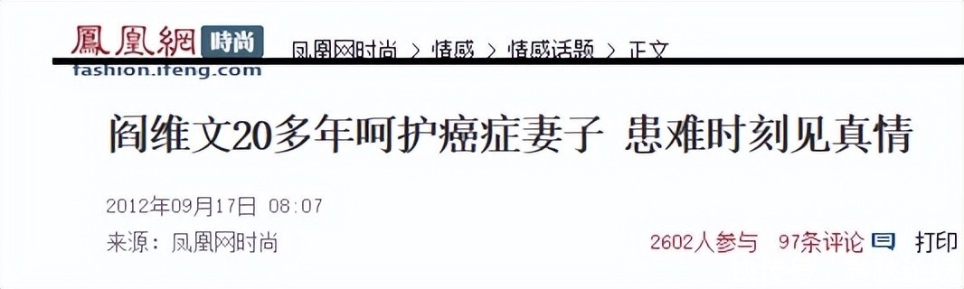 凤凰网前卫2012-09-17-08:07阎维文20多年呵护癌症浑家 患难时代见真情