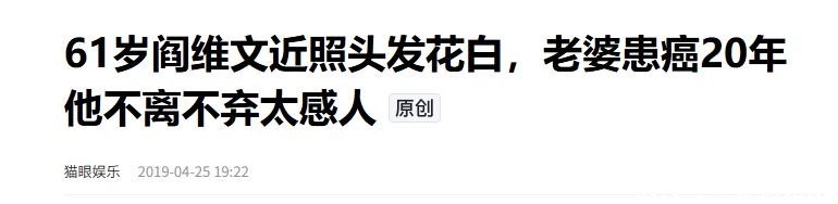 猫眼文娱2019-04-25 19:2261岁阎维文近照头发斑白,夫人患癌20年他不离不弃太感东谈主