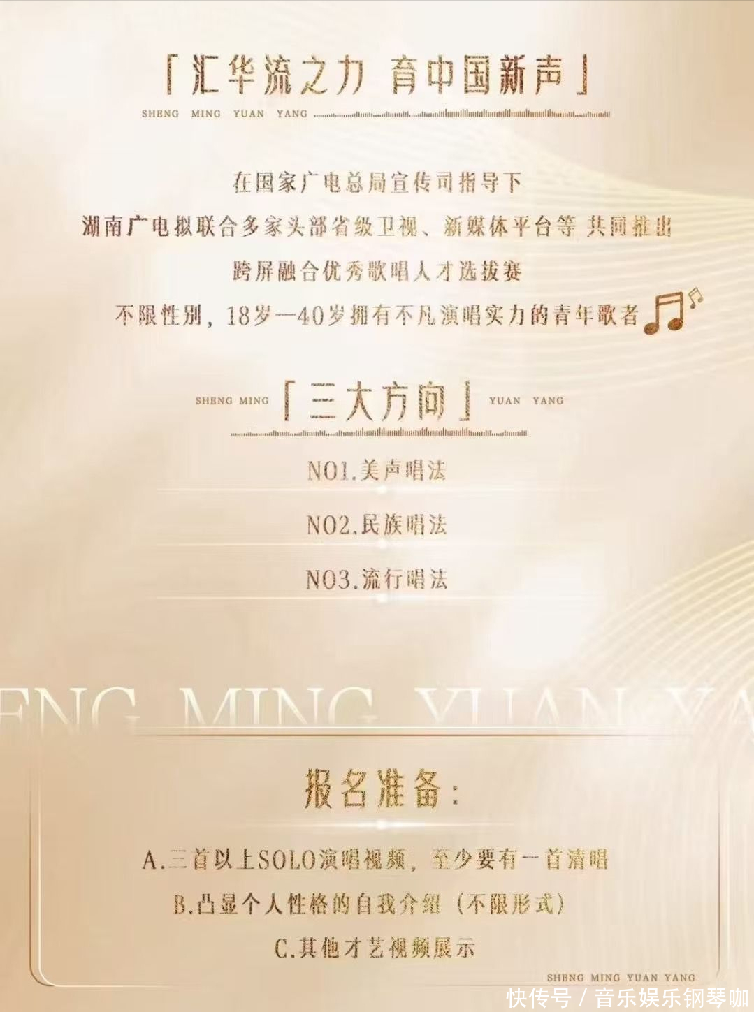 《声鸣远扬》芒果最新打造的全新的选秀,此次将进行内行选手招募,会有四大卫视取悦播出,在芒果和腾讯视频两大平台播出,将会是近20年一场高高在上的选秀重磅音综盛宴。