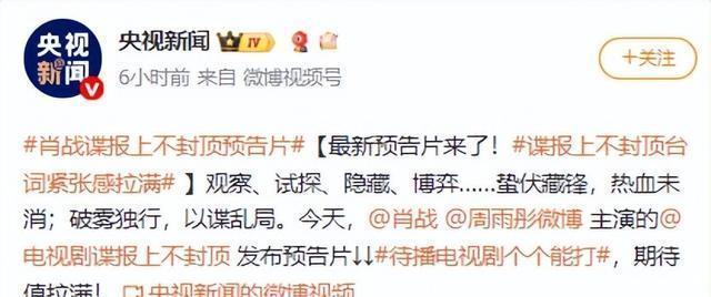 肖战:《谍报上不封顶》 可最受期待的剧,还得是肖战主演的《谍报上不封顶》。 谁能懂被央视单独拿出来作念宣传的含金量啊,肖战是真争光啊。