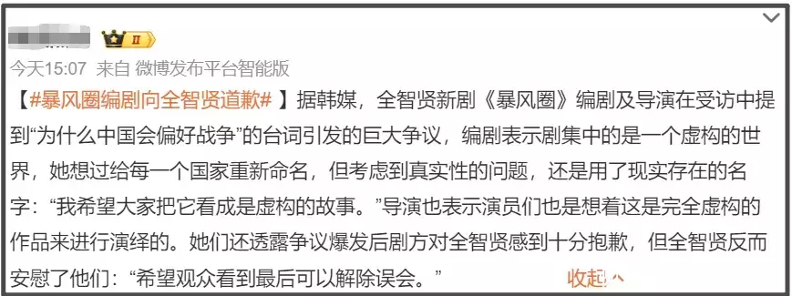 更令东谈主尴尬的是,包括全智贤本东谈主在内,《狂风圈》整体主创莫得对中国以及被抹黑的总共国度发扬出哪怕任何小数歉意,反而相互劝慰了起来,编剧和导演在那有趣全智贤被骂,全智贤还劝慰编剧和导演齐是扭曲。