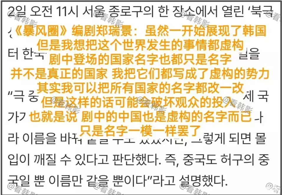 谁不知谈《狂风圈》配景是虚拟的?需要认清试验的明明是你们韩国东谈主吧。