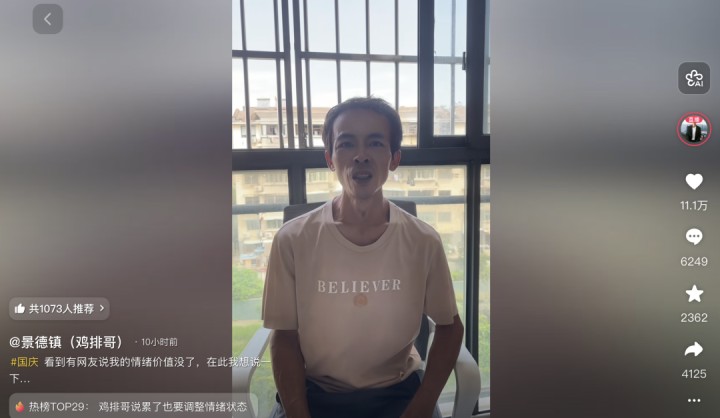 10月3日,“鸡排哥”在个东谈主酬酢账号发布视频回话: