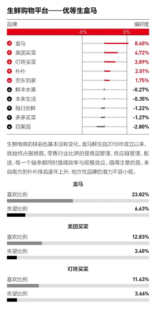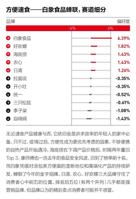 *注:偏好度=(情愿推选比例-失望比例)×50% ;每个品类下有10-40个不等的被调研品牌;
