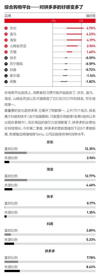 发生位次更换的不仅仅酬酢平台。往常几年,拼多多一直在“详尽购物平台”垫底,而本年,它的排名上升了6位。拼多多的百亿补贴引入品牌官方入驻,处理了破钞者对货源的挂念后,也让更多在酬酢聚集有破钞语言权的“五环内”用户情愿尝试。