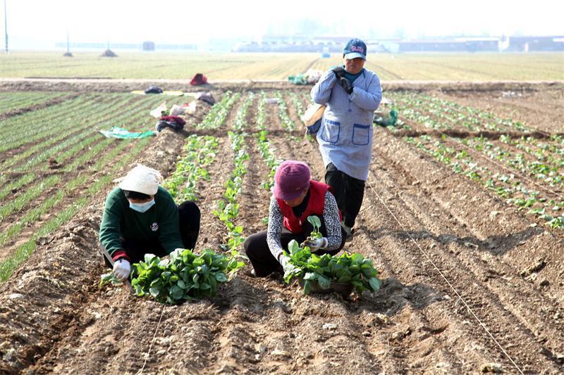 3月5日,农民在山东省聊城市茌平区贾寨镇邢胡刘村田间栽种甘蓝。